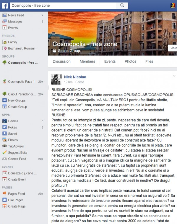 Mai jos aveti si un print screen de la cineva care tot locueste in Cosmo